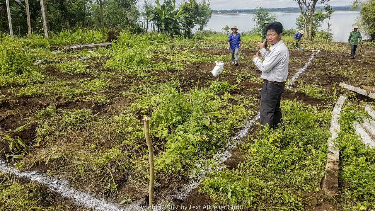 Ein Beispiel: Gestern war Spatenstich mit Buddha-Segnung. Für die Vietnamesen ein wichtiges Ritual. Auch Tag und Zeit wurden durch buddhistische Regeln festgelegt. Dann hat Hiep ein Loch gegraben, es wurde gebetet, ein Stein versenkt und Früchte und Blumen dargebracht.