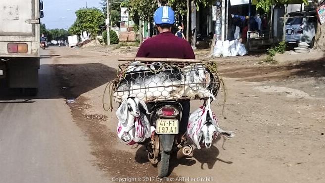 Und nun die Frage: Wie viele Ziegen werden auf diesem Motorrad transportiert?