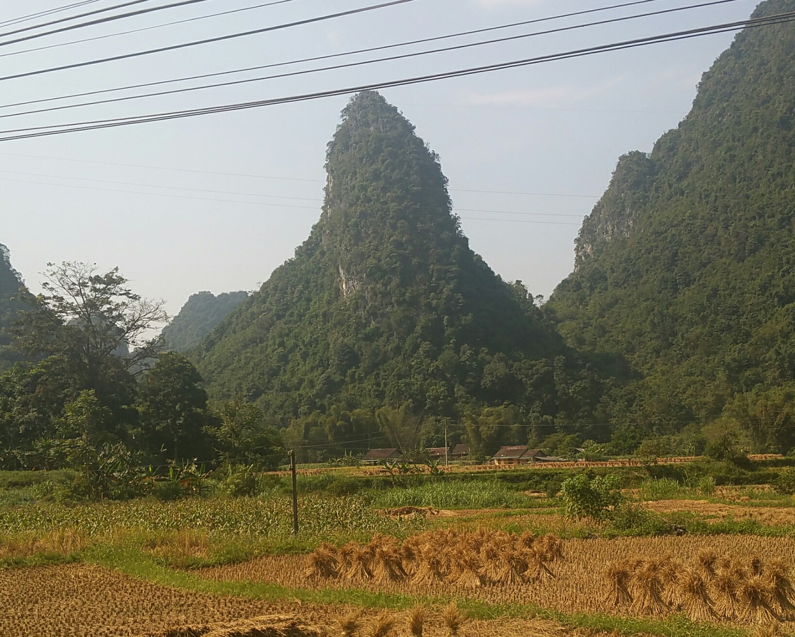 Der Bus fährt langsam aus Cao Bang raus. Immer wieder gibt er Hupzeichen und aus den Stassencafes rennen neue Fahrgäste heran. Manche steigen ein. Andere geben einen Plastiksack zum Transport ab.