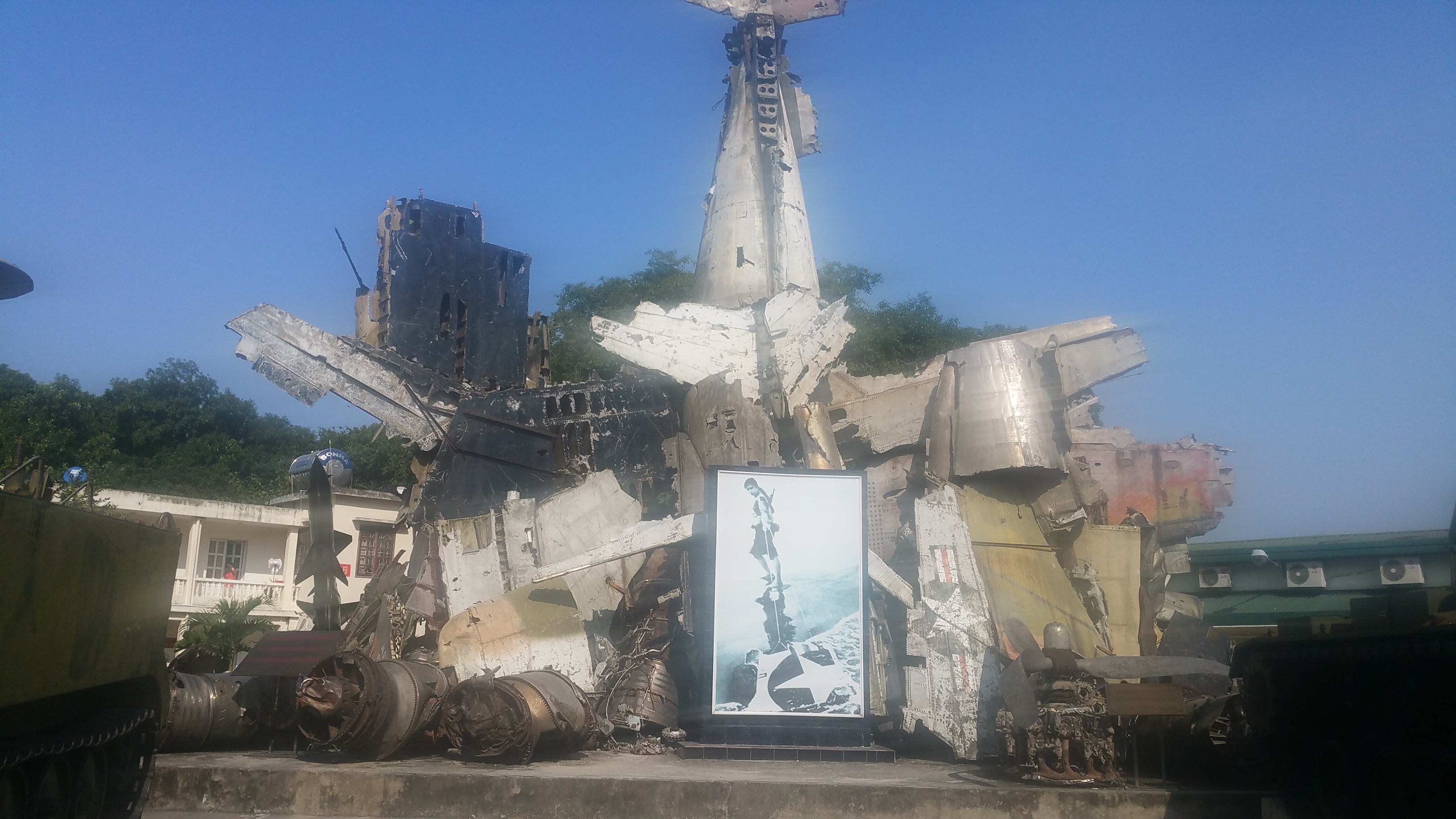 Legende zum Bild: Der Besuch im Militär-Museum war dann schon sehr beklemmend. Gerade so wie die Plastik aus Trümmerteilen, die vor dem Museum aufgebaut ist.