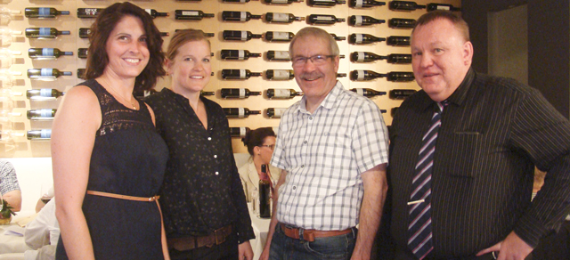Legende zum Bild: Gute Arbeit mit gelungener Perfomance: Aktuarin Martina Gubser, Kassiererin Marlies Locatelli-Giger, Vize-Präsident Markus Merk und Präsident Angelo Mätzler (v.l.). (Bild Marlies Dyk)