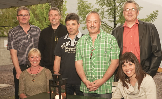 Legende zum Bild: Wieder vollzählig: Vorstand des Verkehrsvereins Murg anlässlich der 113. Hauptversammlung (von links sitzend) Gina Meister, Miriam Mathys, (stehend) Jürg Gubser, Roman Schneider, Pius Peter, Martin Küng und Jürg Hinder. (Bild Peter Jenni)